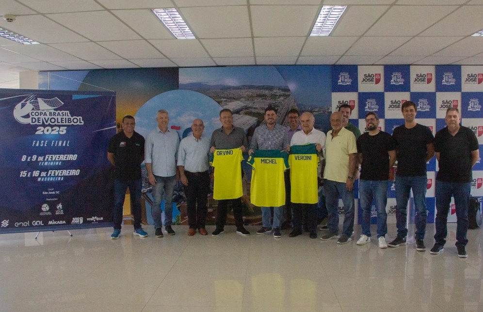 O prefeito de São José, Orvino Coelho de Ávila, recebeu o presidente da Confederação Brasileira de Voleibol (CBV) e ex-treinador da Seleção Brasileira de Vôlei masculina, Radamés Lattari, para um anúncio que promete movimentar a cidade e atrair os holofotes do esporte nacional. São José foi confirmada, na sexta-feira (20), como sede das finais masculinas e femininas da Copa Brasil de Vôlei 2025, que serão realizadas no Centro Multiuso.