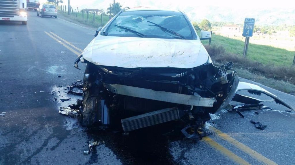 Um automóvel Mercedes-Benz se envolveu em um acidente, na tarde desta quarta-feira (21), no km 4 da SC-407, entre Biguaçu e Antônio Carlos. O motorista teria perdido o controle da direção e o veículo batido em uma pedra ao lado da estrada.
