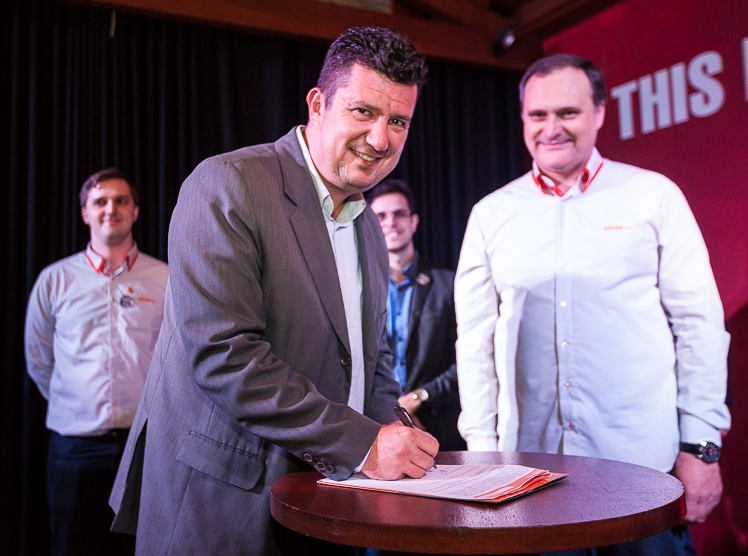 O termo foi assinado durante um evento na noite do dia 3 de novembro, entre o prefeito Ramon Wollinger (PSD) e os diretores da empresa, Dilmar e Eduardo Franchini. O intuito é futuramente ampliar para as outras escolas do município.