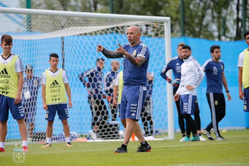 O time treinou no 4-4-2, sem a linha de três zagueiros apreciada por Sampaoli e não tanto pelos jogadores: Armani, Salvio, Mercado, Otamendi e Tagliafico; Mascherano, Enzo Pérez, Banega e Messi; Di María e Higuaín.