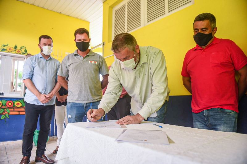 Prefeito de Biguaçu assina ordem de serviço para obras na EBM Manoel Roldão das Neves