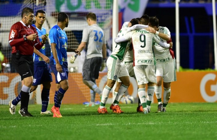 Assim, o Verdão tinha mais tranquilidade para chegar à frente e, aos 14, chegou ao segundo gol, com Cristaldo aproveitando cobrança de escanteio de Allione e falha da zaga catarinense.