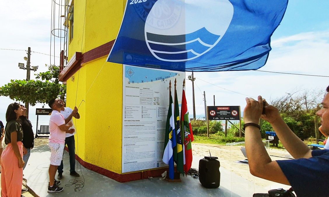 Na manhã desta sexta-feira (9), aconteceu a cerimônia de hasteamento da Bandeira Azul na Praia Grande (Caravelas), em Governador Celso Ramos. A certificação, de reconhecimento a nível global, é concedida às praias e marinas com boa gestão ambiental e qualidade para os banhistas que atendem a critérios, como qualidade da água, educação ambiental e oferta de serviços aos usuários, estabelecidos pela Foundation for Environmental Education (FEE).