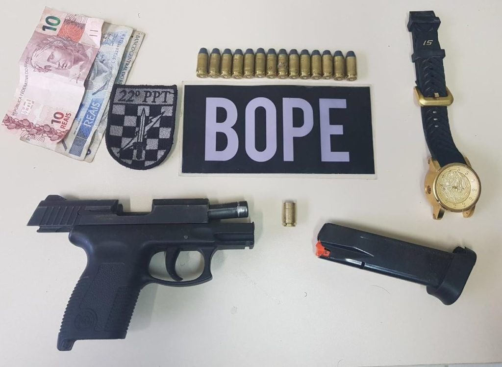 O menor infrator foi detido e com ele fora encontrado uma pistola PT640, calibre .40, com numeração raspada e 15 munições do mesmo calibre. Um maior de idade que teria entregado a arma para o adolescente também foi detido e conduzido à Central de Plantão Policial para os devidos procedimentos.