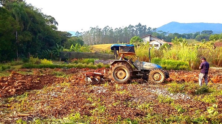 Numa área de aproximadamente 500 m2, foram realizadas atividades de preparo de solo, aplicação de calcário e fosfato natural e semeadura de adubação verde de inverno para produção de biomassa, com o objetivo de melhorar a fertilidade do solo para a implantação do sistema agroflorestal no início da primavera.