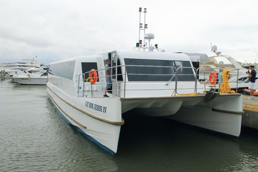 O catamarã, modelo de embarcação que será usado para o transporte marítimo na Grande Florianópolis, tem capacidade para 163 passageiros sentados, três marinheiros e pode atingir a velocidade de 30 nós por hora, o que corresponde a 60 km/h. Barcos desse modelo operam em cidades como Porto Alegre e Belém do Pará.