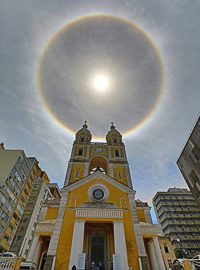Segundo dados do Instituto Nacional de Meteorologia (Inmet), o halo se forma devido à nuvens carregadas de cristais de gelo que são atravessadas pela luz solar. Essas nuvens cheias de partículas de gelo estão a seis quilômetros da superfície terrestre e indicam a chegada de uma frente fria ou de altos níveis de umidade.