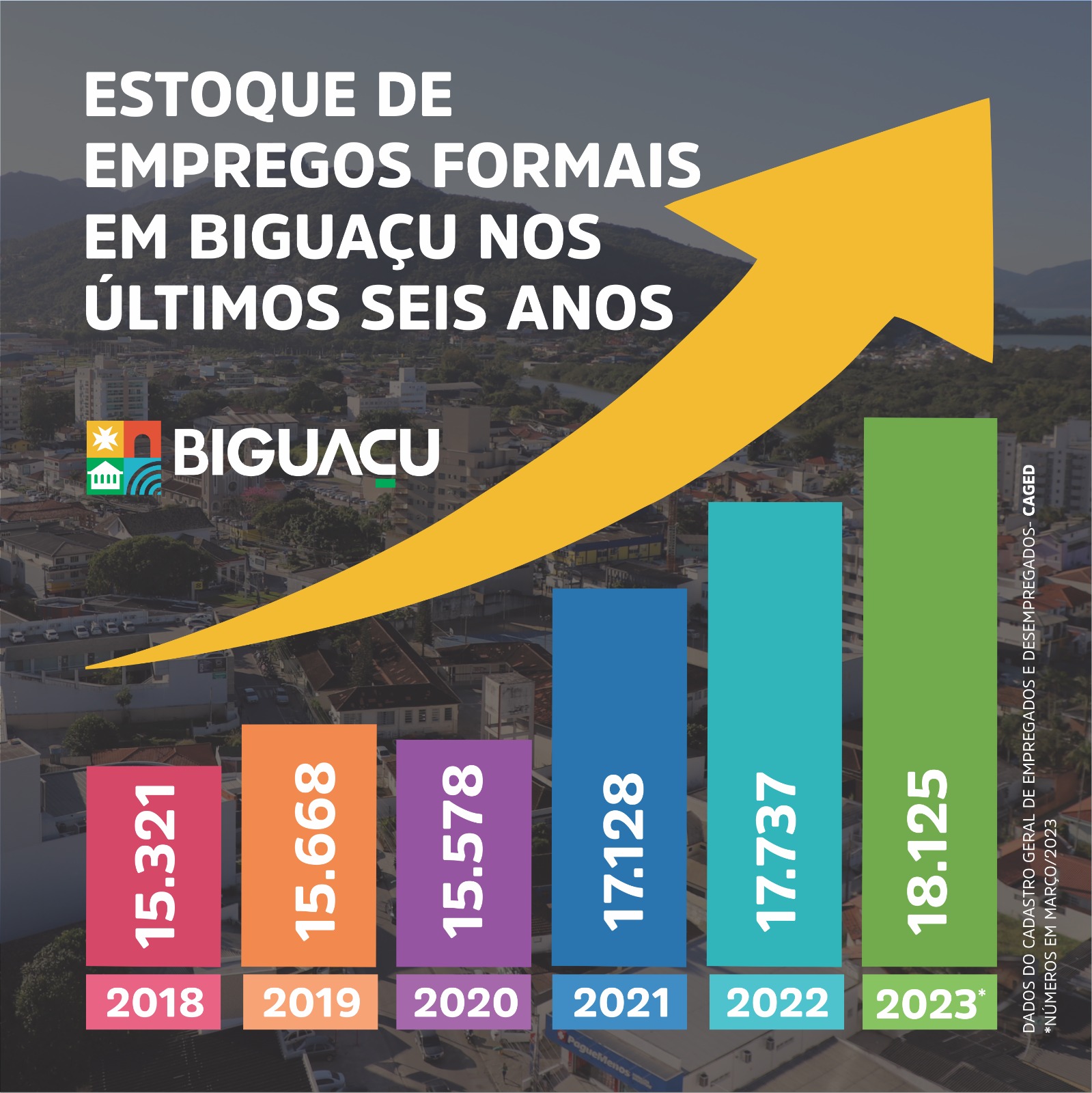 Conforme o Caged, em março, Biguaçu teve saldo positivo de 209 vagas, (diferença das 1.101 contratações frente aos 892 desligamentos). Com isso, o terceiro mês de 2023 fechou com estoque de 18.125 empregos formais – o maior da história – substituindo o recorde do mês de fevereiro deste ano, quando o volume foi de 17.916.