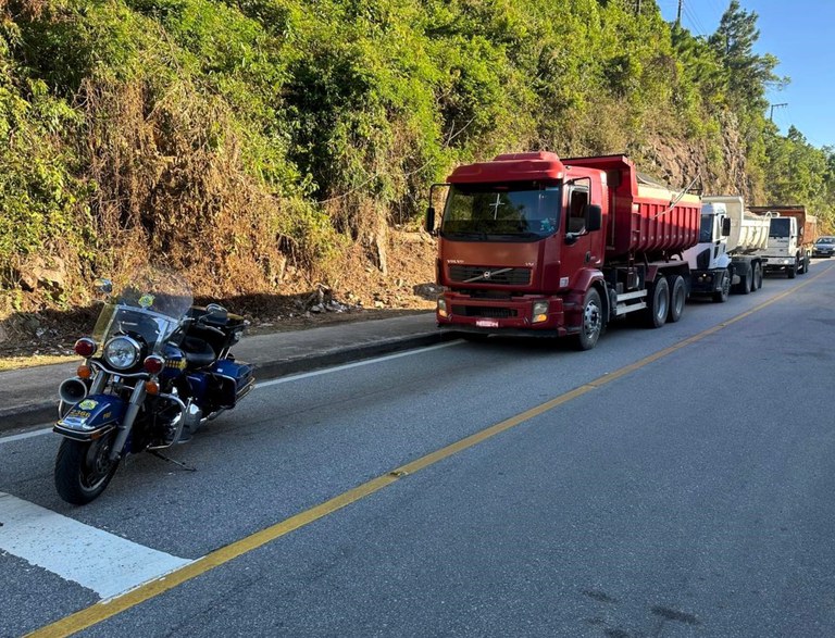 Todos os veículos transportavam pedra brita proveniente de uma mesma pedreira na região. Ele seguiram viagem somente depois do transbordo da carga excedente para outros caminhões.