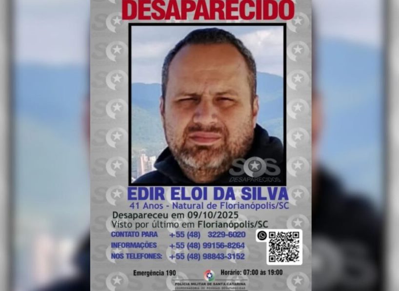 Um homem identificado como Edir Eloi da Silva, de 41 anos, está desaparecido em Florianópolis desde o dia 9 de outubro de 2025, após ter sido sequestrado por cinco homens. O crime ocorreu no bairro Capoeiras, quando Edir saía do trabalho. Autônomo, ele atuava na manutenção de imóveis.