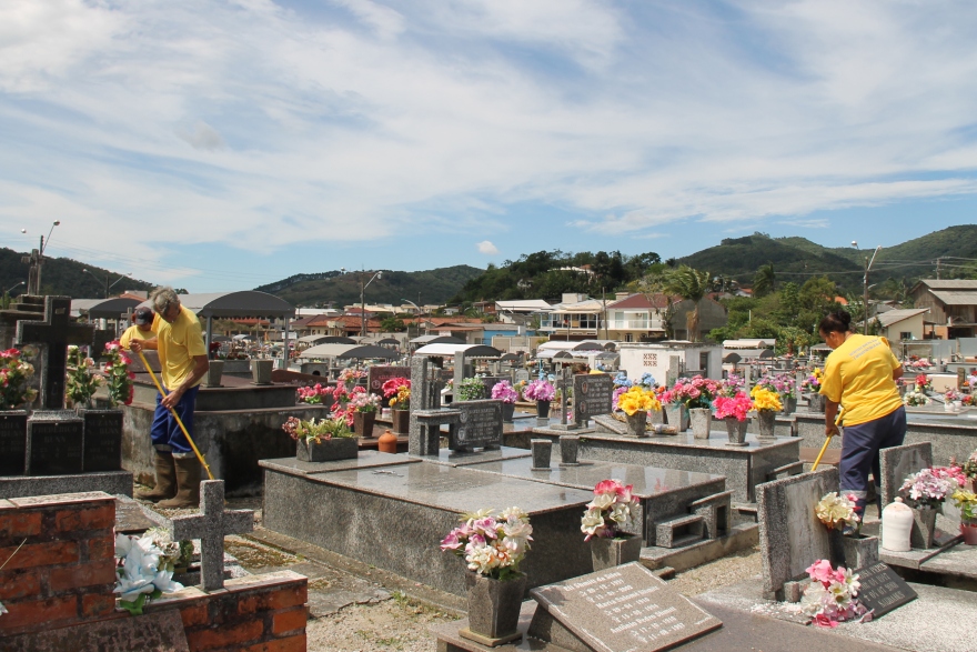 Em preparação para o Dia de Finados – 2 de novembro – a Prefeitura de Biguaçu, através da Secretaria Municipal de Obras e Infraestrutura, intensificou, nesta semana, os trabalhos de limpeza e manutenção no Cemitério Municipal São João Evangelista, o maior do município. Situado no bairro Fundos, existem no local cerca de quatro mil túmulos.