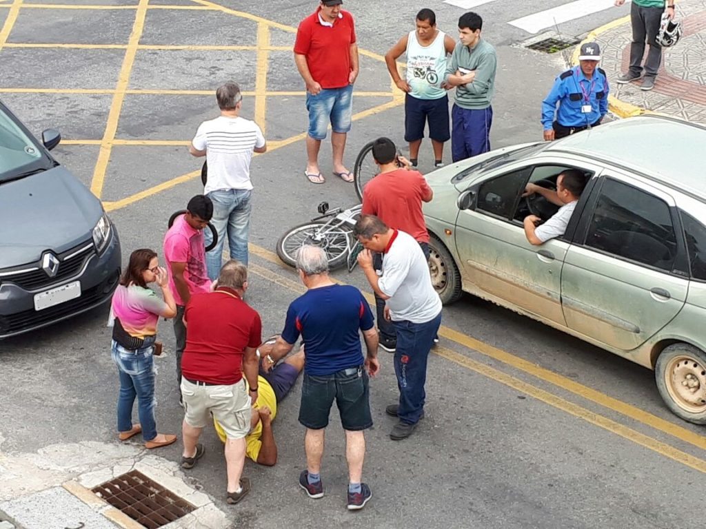 Um ciclista foi atropelado por um automóvel Renault Logan, na manhã desta sexta-feira (3), no cruzamento das ruas Leopoldo Freiberger e Avanir Freiberger, em frente à agência da Caixa Econômicas Federal, no centro de Biguaçu. O carro é de um motorista do Uber. A bicicleta transitava na Avanir, sentido Praia João Rosa-Centro, e, o automóvel, na Leopoldo – sentido BR-101-Rua 7 de Setembro.