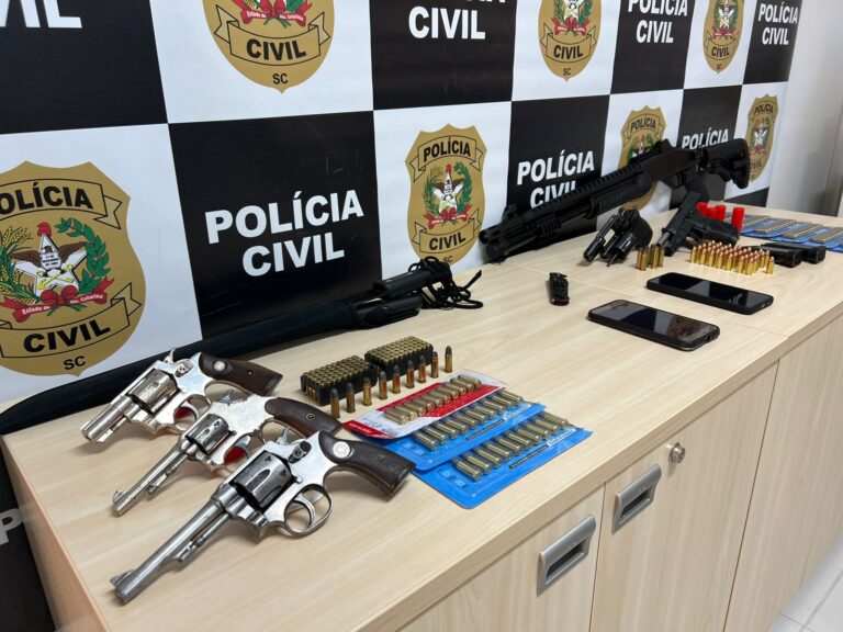 A Polícia Civil de Santa Catarina, por meio da Delegacia de Repressão ao Crime Organizado (DRACO/DEIC) deflagrou, nesta quarta-feira (31), uma operação policial para cumprir 14 ordens judiciais, sendo seis mandados de prisão e oito de busca e apreensão contra investigados por crimes de comércio ilegal de armas de fogo e munições, tráfico de drogas e associação ao tráfico na região da Grande Florianópolis.