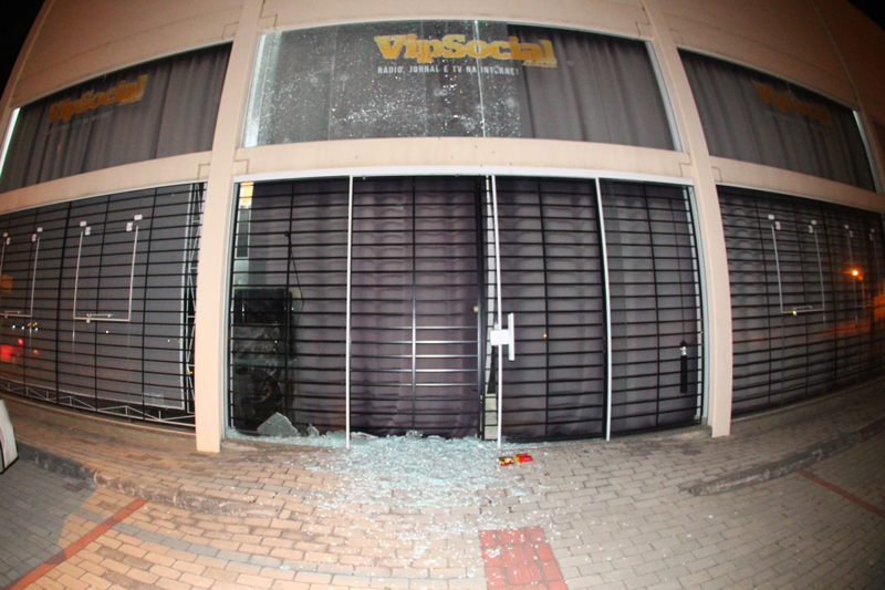 Hora de Santa Catarina – Criminosos dispararam contra a sede do site de notícias VipSocial, no Centro de Tijucas, na noite desta quinta-feira. Segundo a Polícia Militar foram aproximadamente 20 tiros contra o prédio, que ficou com vidros estilhaçados e marcas na fachada. Local estava vazio no momento do atentado e ninguém ficou ferido.