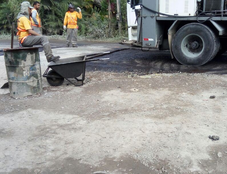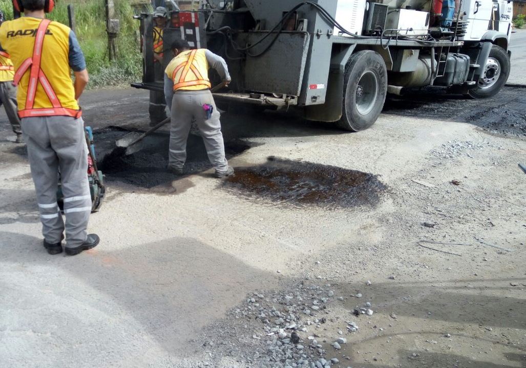 O Departamento Estadual de Infraestrutura (Deinfra) encaminhou, na manhã desta quinta-feira, uma empreiteira para fazer “remendos” em trechos mais críticos da SC-407, na região do Alto Biguaçu. Dois caminhões caçamba carregados com material betuminoso e um grupo de operários trabalham no local, recortando o pavimento onde há grandes buracos e tapando novamente com asfalto.