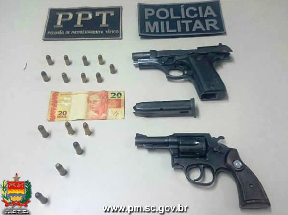 Os envolvidos e as armas apreendidas foram encaminhados à Central Regional de Plantão Policial de São José. A informação é da soldado PM Josiane Cordeiro Marcelino.