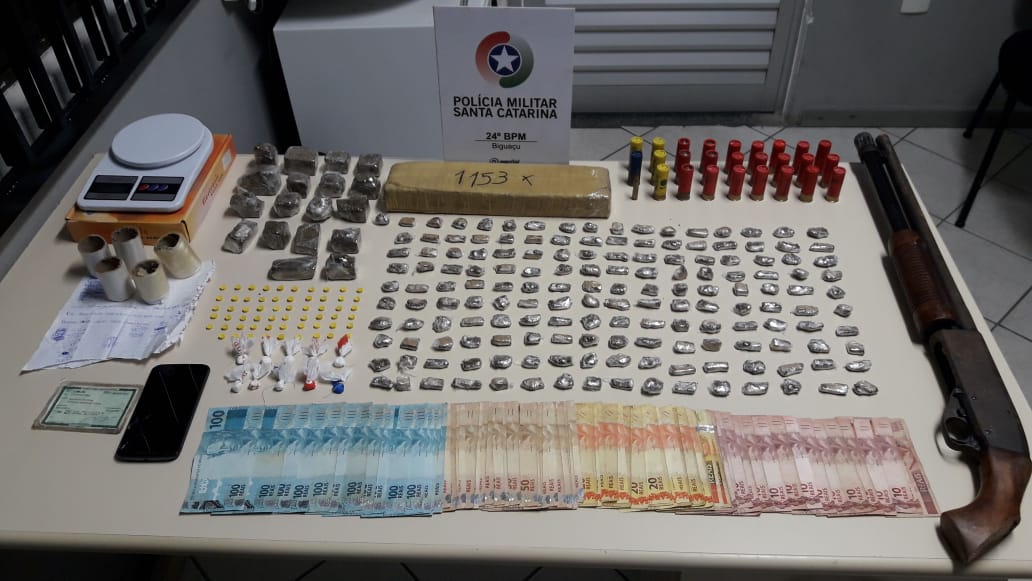 A Polícia Militar de Biguaçu prendeu dois homens sob a acusação de tráfico de drogas, nesta sexta-feira (1), em uma casa na rua Quintino Bocaiuva, no bairro Fundos. A dupla de traficantes foi detida após semanas de investigação e campanas feitas pelo setor de inteligência do 24° Batalhão da PM.