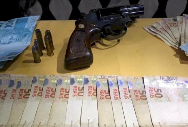 Durante a abordagem, os militares perceberam que um dos suspeitos estava armado. Em busca pessoal, um revólver calibre 38, municiado com cinco munições, e a quantia de R$ 1.772,00 em espécie foram localizados.
