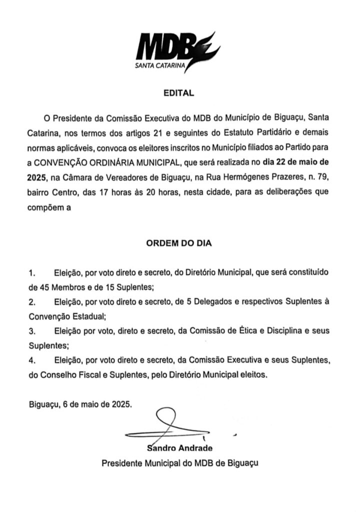 Edital de Convenção do MDB