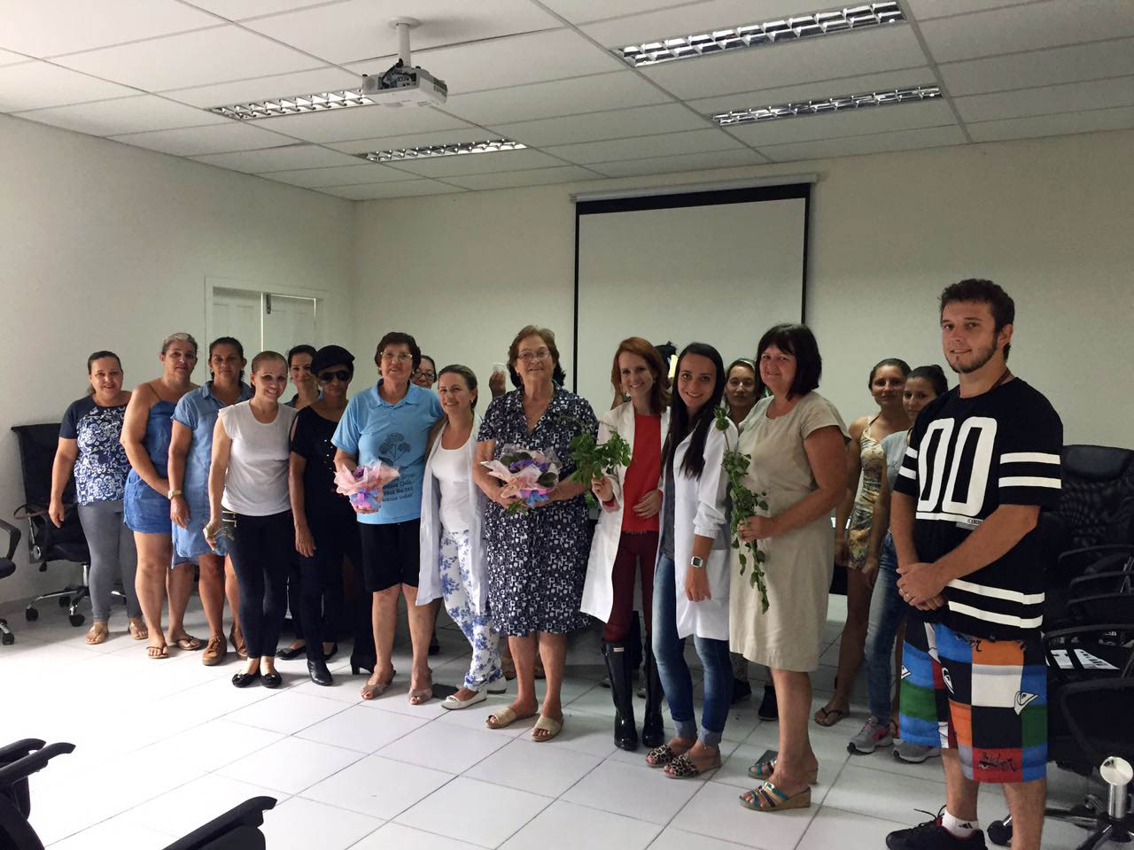 Além dos cuidadores, estavam presentes os profissionais do programa e as voluntárias da pastoral da Saúde de Biguaçu, Iria Buss Roveda (Tesoureira) e Edite Kremer Petry (Coordenadora).