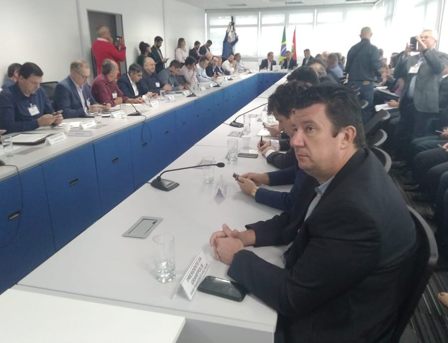 O prefeito Ramon Wollinger (PSD) representou a Associação dos Municípios da Grande Florianópolis (Granfpolis) em reunião entre o Governo do Estado, Federação Catarinense dos Municípios (Fecam) e outras 20 associações municipais. No encontro realizado na manhã d quinta-feira (9), o governador Carlos Moisés (PSL) apresentou o “Projeto Recuperar”. Os detalhes foram apresentados pelo próprio governador e pelos secretários de Estado da Casa Civil, Douglas Borba, e de Infraestrutura, Carlos Hassler.