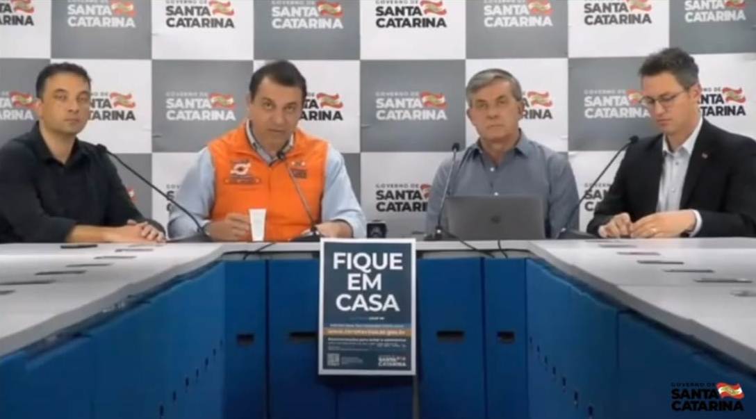 O governador Carlos Moisés (PSL) informou que não está em plano, neste momento, o fechamento dos aeroportos no Estado, já que as companhias aéreas diminuíram o número de voos em 50%. Também afirmou que não há desabastecimento nos supermercados. Falou de dificuldades pontuais da Casan no fornecimento de água em algumas regiões, já que, com milhares de pessoas confinadas dentro de suas casas, aumenta o consumo.