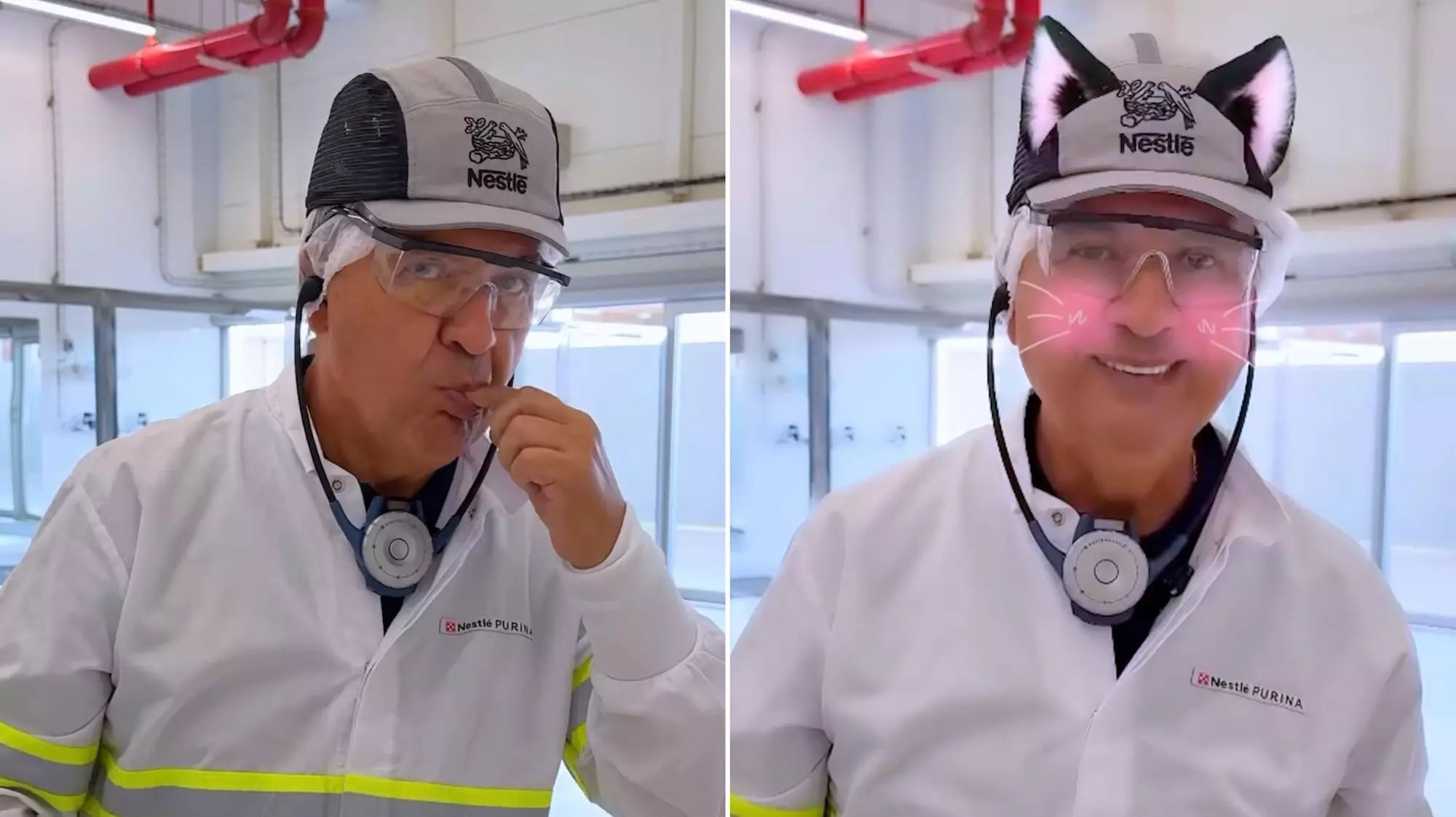 Em um vídeo publicado em seu perfil, o governador de Santa Catarina aparece dentro da unidade industrial usando equipamentos de proteção e até um filtro divertido de gatinho. Em tom bem-humorado, ele pega um grão de ração e diz: “Ração de gato? Então eu posso provar”.