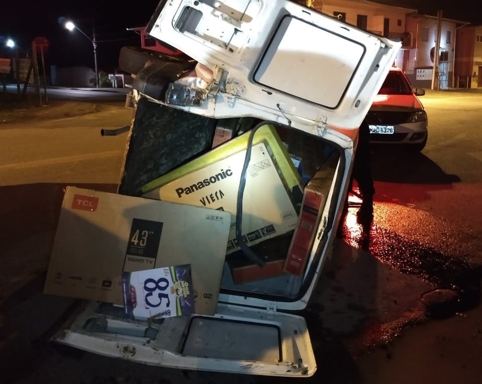 Após arrombarem a loja Koerich em Garopaba, os bandidos saíram com o Fiorino carregado rumo a São José. Mas não contavam que na BR-101 topariam com várias viaturas da PM e da Guarda Municipal. Houve ordem de parada, que não foi obedecida pelo motorista do Fiat. Em alta velocidade, o furgãozinho começou a fugir e entrou no bairro, perdeu o controle e capotou.