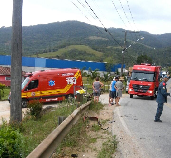 Um homem morreu, nesta segunda-feira (31), em um acidente envolvendo a motocicleta Honda que ele conduzia e um caminhão Mercedes Benz, na SC-407, entre Biguaçu e Antônio Carlos.