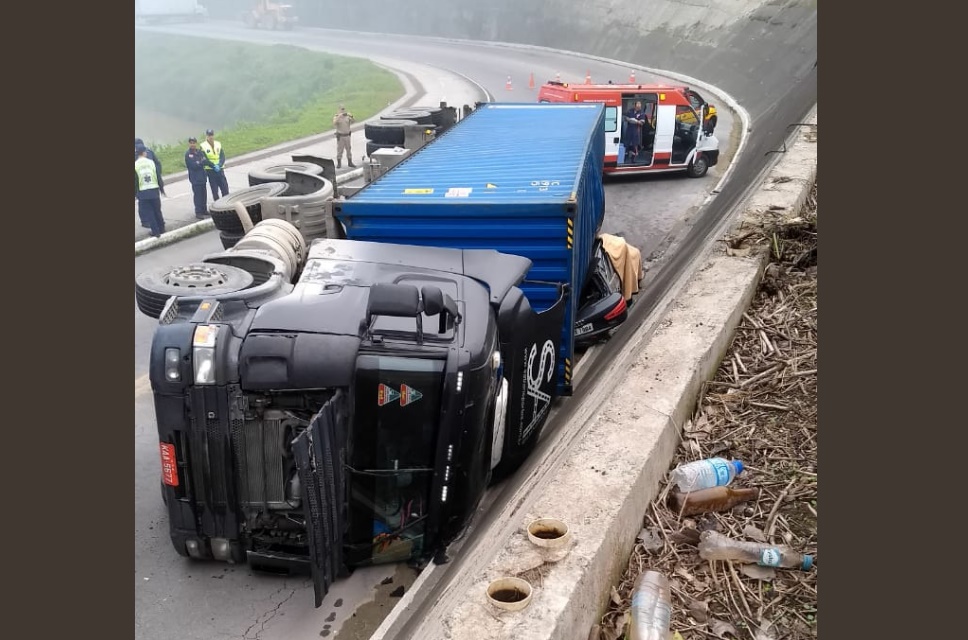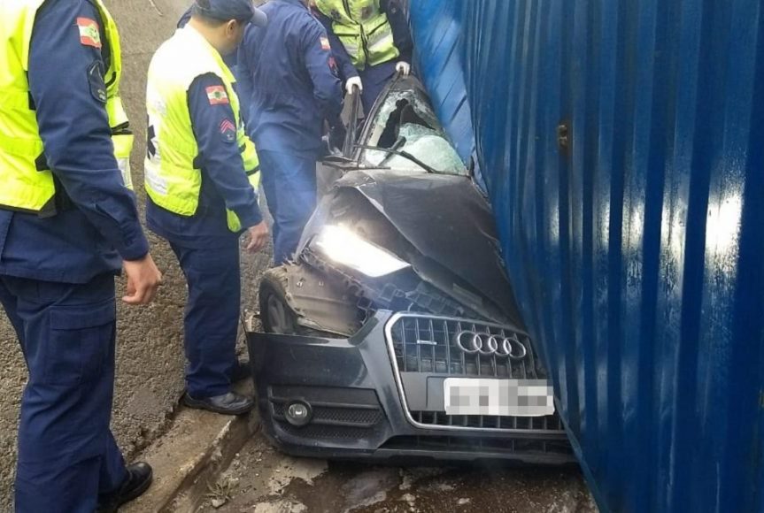 Uma mulher identificada como Ana Paula Benaci, de 33 anos, morreu em um acidente de trânsito em Brusque, no Vale do Itajaí, na manhã desta quarta-feira (20), quando uma carreta Scânia transportando um contêiner tombou sobre o automóvel Audi em que ela estava, na avenida Beira Rio, próximo à ponte dos bombeiros. O carro foi esmagado pelo contentor de carga e a vítima faleceu no local.