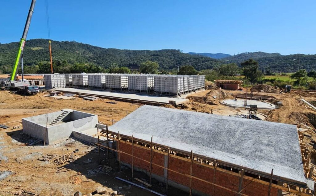 As obras da nova Estação de Tratamento de Água de Biguaçu não param de avançar. Nesta semana, a Companhia Catarinense de Águas e Saneamento (Casan) terminou a instalação dos flocodecantadores, que combinam os processos de floculação e decantação e ajudam a remover partículas e impurezas da água. As estruturas foram pré-fabricadas em aço inoxidável para agilizar o andamento da obra, que tem um investimento de R$ 86,3 milhões.