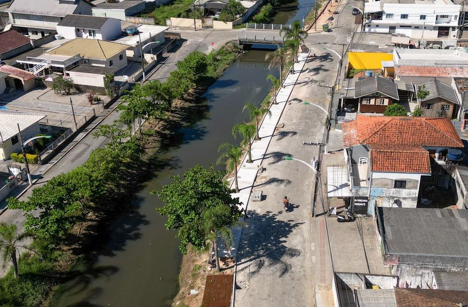 Antes dessa fase de obras, a Prefeitura de Biguaçu fez o desassoreamento do leito do rio para prevenção de enchentes.