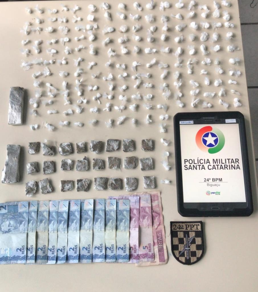 Um adolescente foi apreendido nesta terça-feira (16), no Jardim Janaína, em Biguaçu, pelo Pelotão de Patrulhamento Tático (PPT) do 24º Batalhão de Polícia Militar, devido à prática de tráfico. Esta é a segunda vez neste mês de abril que o mesmo rapaz é detido por venda de drogas.
