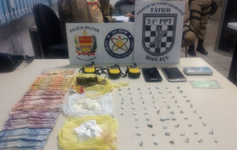 A Polícia Militar de Biguaçu apreendeu, na noite desta terça-feira (20), três menores de idade – um de 17 anos, outro de 15 e uma garota também com 15 – praticando tráfico de drogas, no morro da Boa Vista. Em consulta ao sistema a PM verificou que um deles estava com mandado de busca e apreensão determinado pela Justiça.