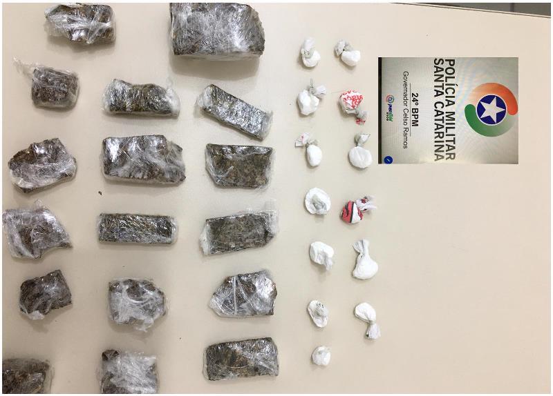 Foram apreendidos 17 buchas de maconha de diferentes tamanhos e 13 petecas de cocaína. Diante do flagrante, o traficante foi detido e encaminhado para os devidos registros na Polícia Civil.