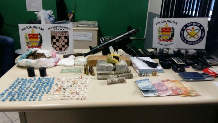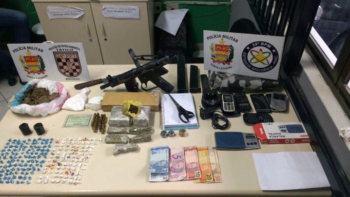 Uma submetralhadora 9mm foi apreendida por homens do 24° Batalhão de Polícia Militar (BPM), nesta terça-feira (14), durante uma operação de combate ao tráfico de drogas, no Morro da Boa Vista, em Biguaçu. Drogas, munições, balanças de precisão, dinheiro e ‘cadernos de contabilidade’ da venda de entorpecentes também foram localizados com um homem e uma mulher – que acabaram presos em flagrante.