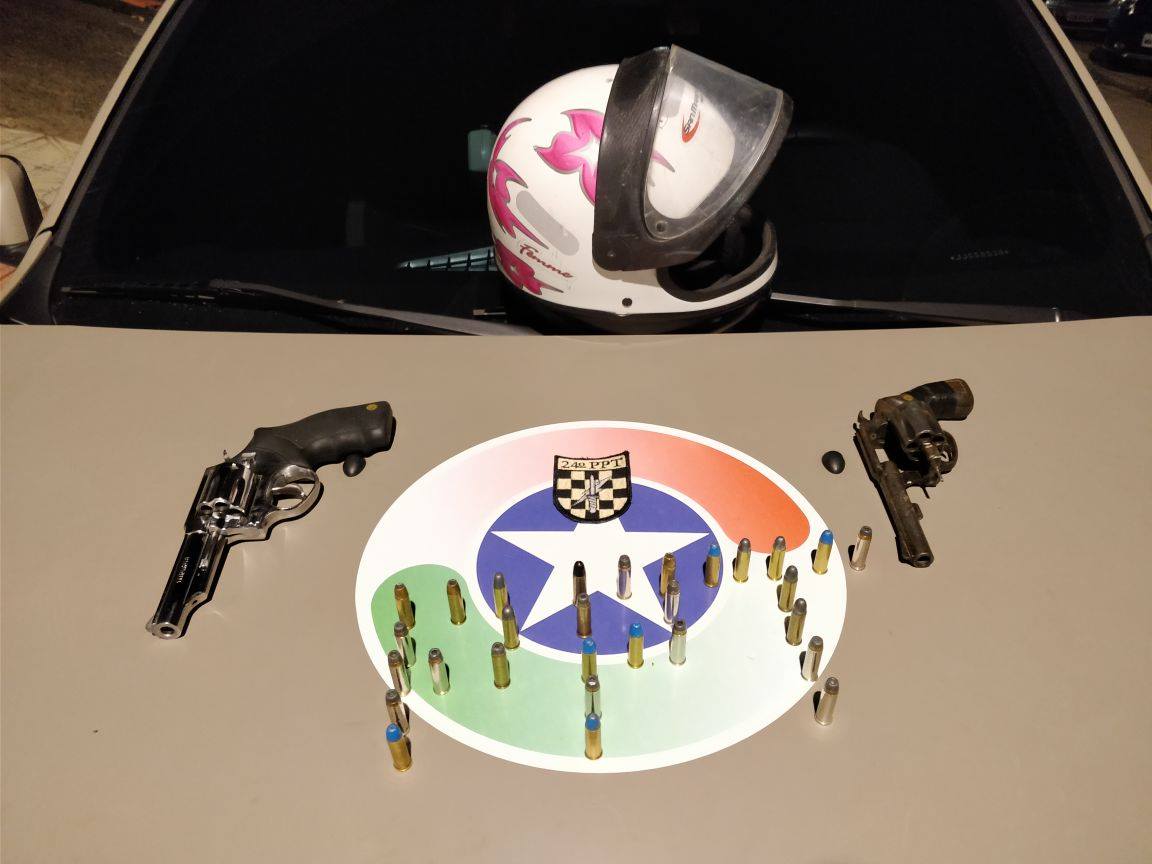 A Polícia Militar de Biguaçu prendeu um motociclista, na madrugada desta quinta-feira (15), após ele efetuar tiros e ser denunciado por moradores. Com o indivíduo foram encontrados dois revólveres e 29 munições.