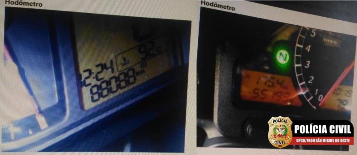 A Polícia Civil cumpriu dez mandados de busca e apreensão em revendedoras de veículos e nas casas de empresários, nas cidades de São Miguel do Oeste e Belmonte, na região Oeste de Santa Catarina, com a finalidade de apurar a adulteração de hodômetros de automóveis. Foram apreendidos diversos aparelhos eletrônicos utilizados para realizar a redução da quilometragem nos hodômetros dos carros, celulares e computadores. Um total de 26 veículos com suspeita de fraude foram apreendidos e serão submetidos à perícia.