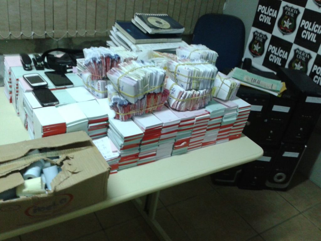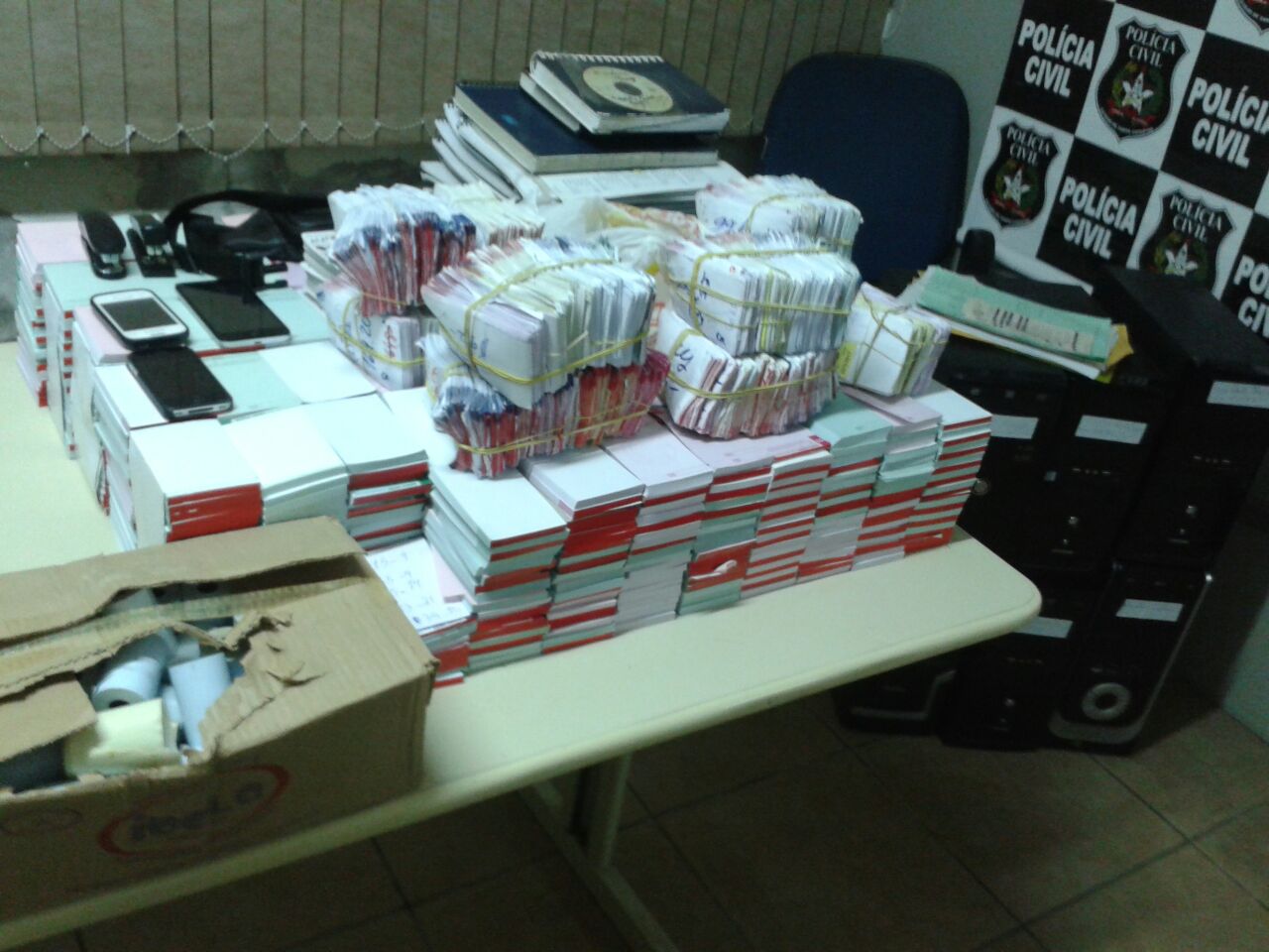 Como fruto das buscas, os policiais encontraram diversos materiais que guardavam relação com a prática de jogo do bicho, tais como blocos de anotações, bloco de apostas com logotipo impresso, cadernos com a notações diárias de entrada e saída de valores, calculadoras e demais objetos.