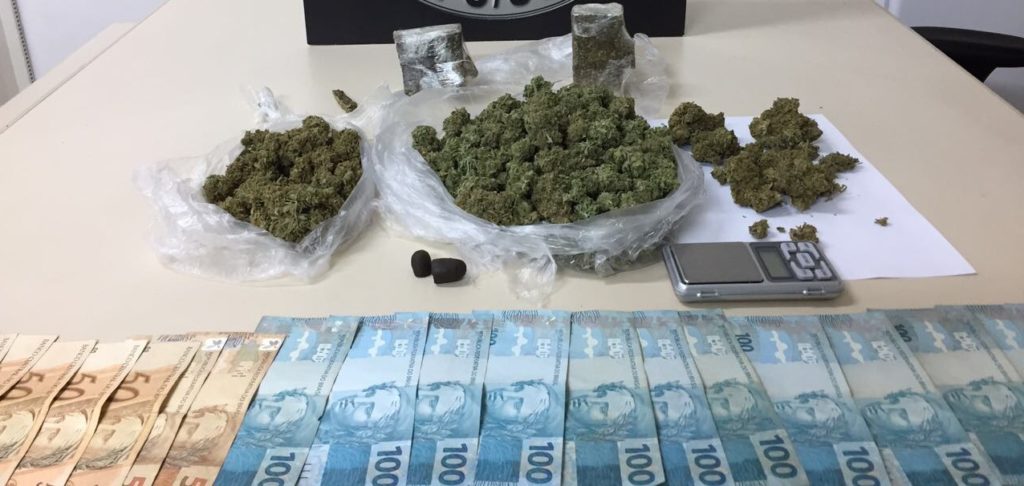 No total, os policiais apreenderam 400 gramas de skunk, 450 gramas de maconha, além de haxixe, dinheiro, balança de precisão e a contabilidade do tráfico.