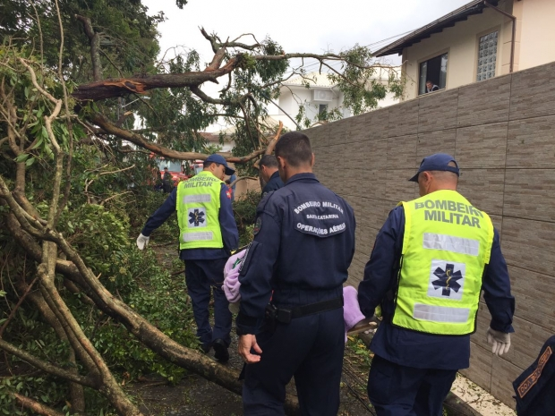 O Corpo de Bombeiros na tarde do ocorrido saíram em socorro dos atingidos distribuindo materiais de emergência bem como cortando as árvores que caíram sobre as residências e estradas.