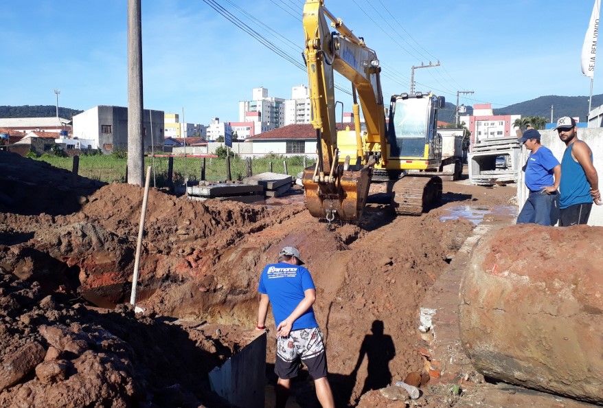 Da Assessoria – Minimizar o risco de alagamentos e enchentes é o objetivo das obras de Macrodrenagem que a Prefeitura de Biguaçu está executando no bairro Rio Caveiras. Chamada de Macrodrenagem 2, a ação consiste na implantação de galerias de concreto de 2 metros de largura por 1,5 de altura para captação de águas pluviais e de enxurradas, evitando alagamentos da região.
