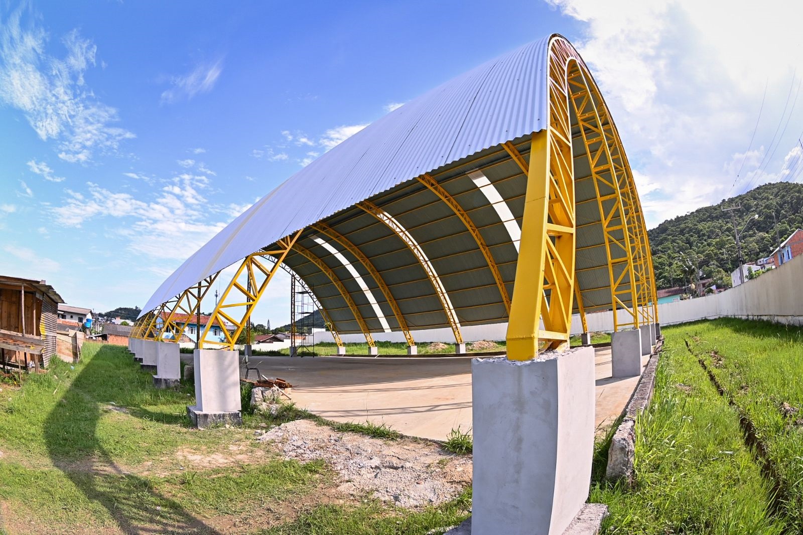 A quadra de esportes da EBM Olga de Andrade Borgonovo, no bairro Bom Viver, em Biguaçu, está recebendo cobertura. Em breve, os alunos da unidade escolar poderão usufruir da estrutura para praticarem atividades esportivas.