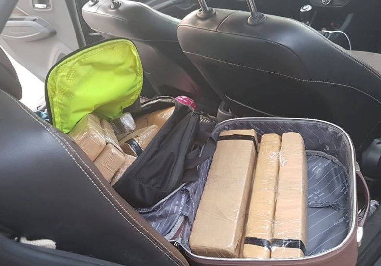 Conforme a PRF, a primeira apreensão ocorreu por volta de 17h20. Os policiais viram um Ford Ka vermelho, com placas de Cascavel (PR) em péssimas condições transitando na rodovia e determinaram sua parada. O que chamou a atenção foi o fato do motorista ser brasileiro e o passageiro paraguaio. Os agentes realizaram uma vistoria no veículo e no porta-malas foi encontrado 86 kg da droga.