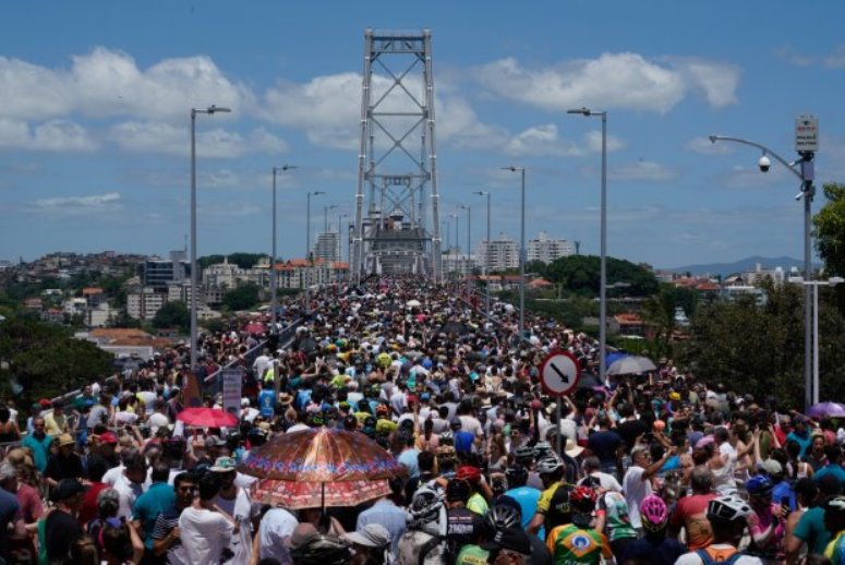 População acessando a Ponte pelo lado continental – Foto: Julio Cavalheiro / Secom