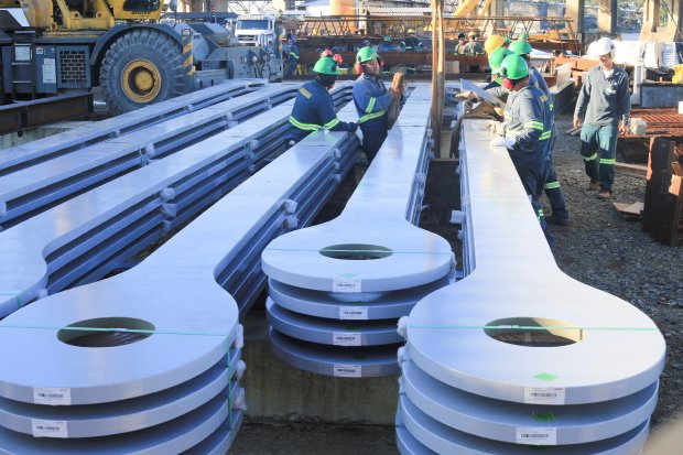 As peças têm em média 13 metros de comprimento, 750 milímetros de largura, 50 milímetros de espessura e pesam cerca de 1,8 toneladas. Foram fabricadas pela Usiminas, no Estado de Minas Gerais e o custo total de todas as unidades é de R$ 47,2 milhões. “As peças foram fabricadas com aço especial, feito de um liga de ponta, que passou por todas as especificações exigidas pelo projetista”, destacou Wenceslau.
