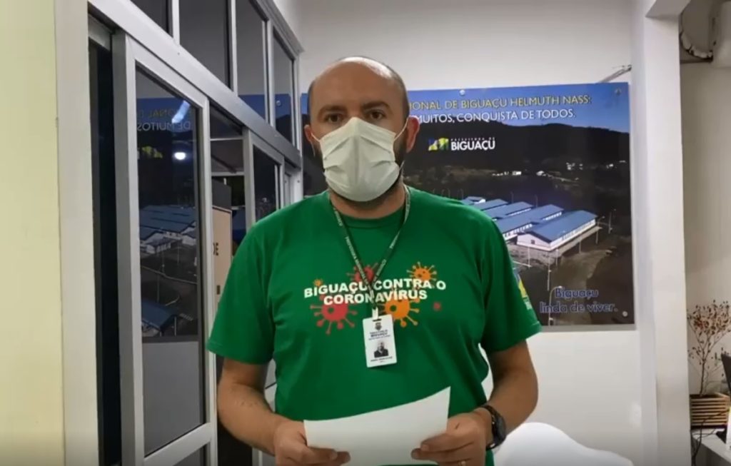 O secretário de Saúde de Biguaçu, Daniel César da Luz, confirmou em vídeo divulgado em uma rede social nesta sexta-feira (24), o 3º caso de Covid-19 no município. A pessoa trabalha em Florianópolis, diretamente com atendimento a pessoas, e a Diretoria Epidemiológica da capital já foi informada. “O paciente está internado realizando todos os procedimentos cabíveis e em pleno tratamento na nossa ala Covid-19 de nosso hospital”, informou Daniel.