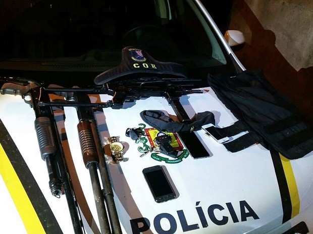 Com eles foram encontradas duas espingardas calibre 12, um revólver, coletes balísticos e uma metralhadora.