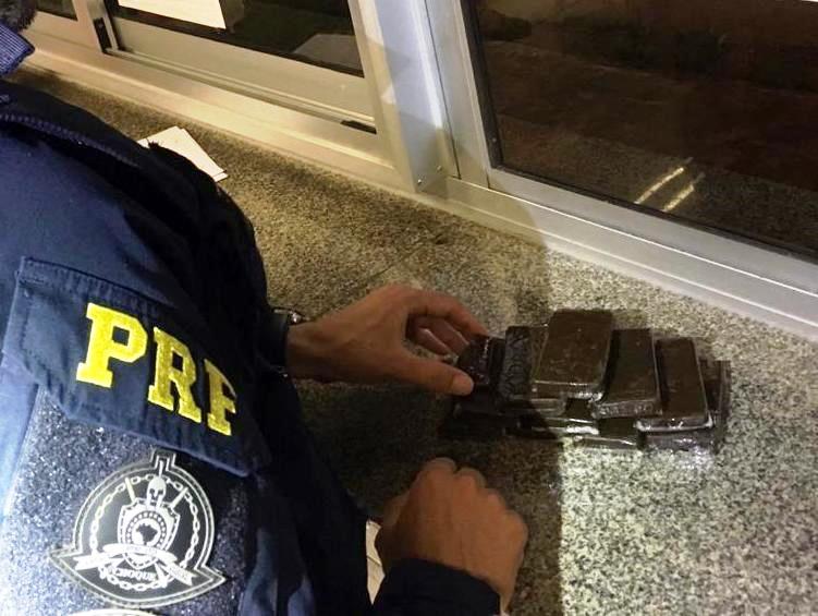 Sob o banco do passageiro foi localizada uma sacola com a droga, totalizando aproximadamente um quilo dividido em dez tabletes. Também foram encontrados os frascos de fertilizantes comumente usados para adubar plantações de maconha em estufa.