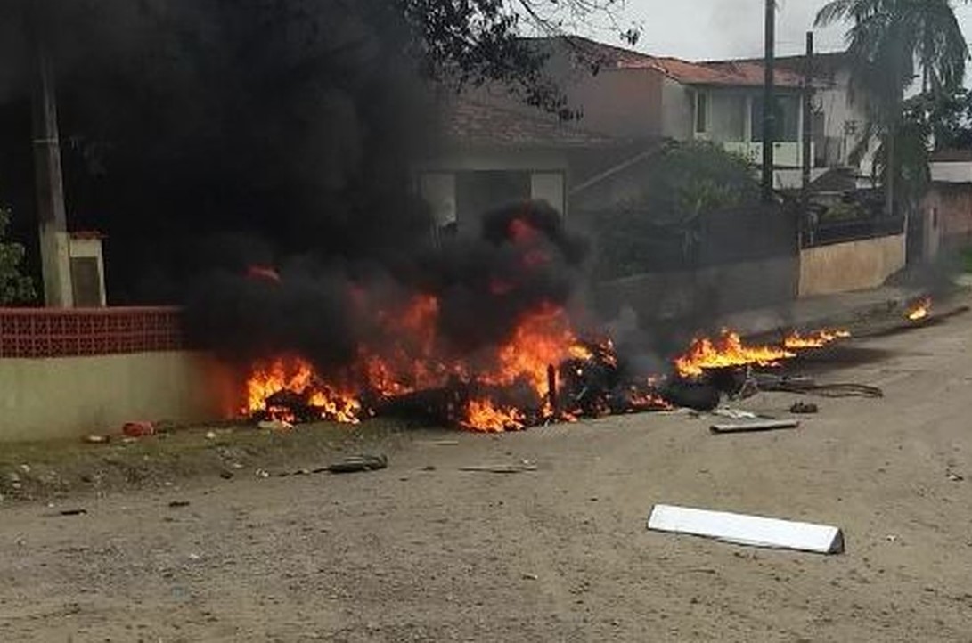 G1 – A queda de um helicóptero na tarde desta quinta-feira (8) provocou a morte de três pessoas e deixou uma ferida no bairro Paranaguamirim, na Zona Sul de Joinville, no Norte catarinense. A aeronave caiu na rua por volta das 16h, perto de várias casas, e pegou fogo em seguida. A Polícia Militar informou que foram encontradas duas armas na aeronave.
